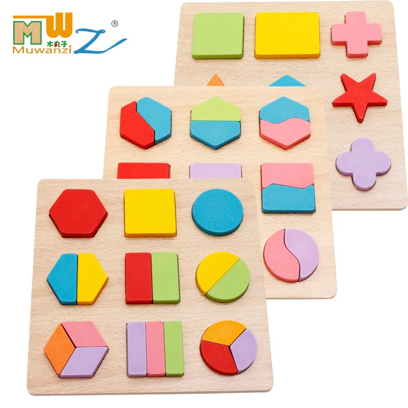 Geometric Shapes Matching Building Blocks Early Childhood Montessori Teaching Aids 3D Puzzle Model