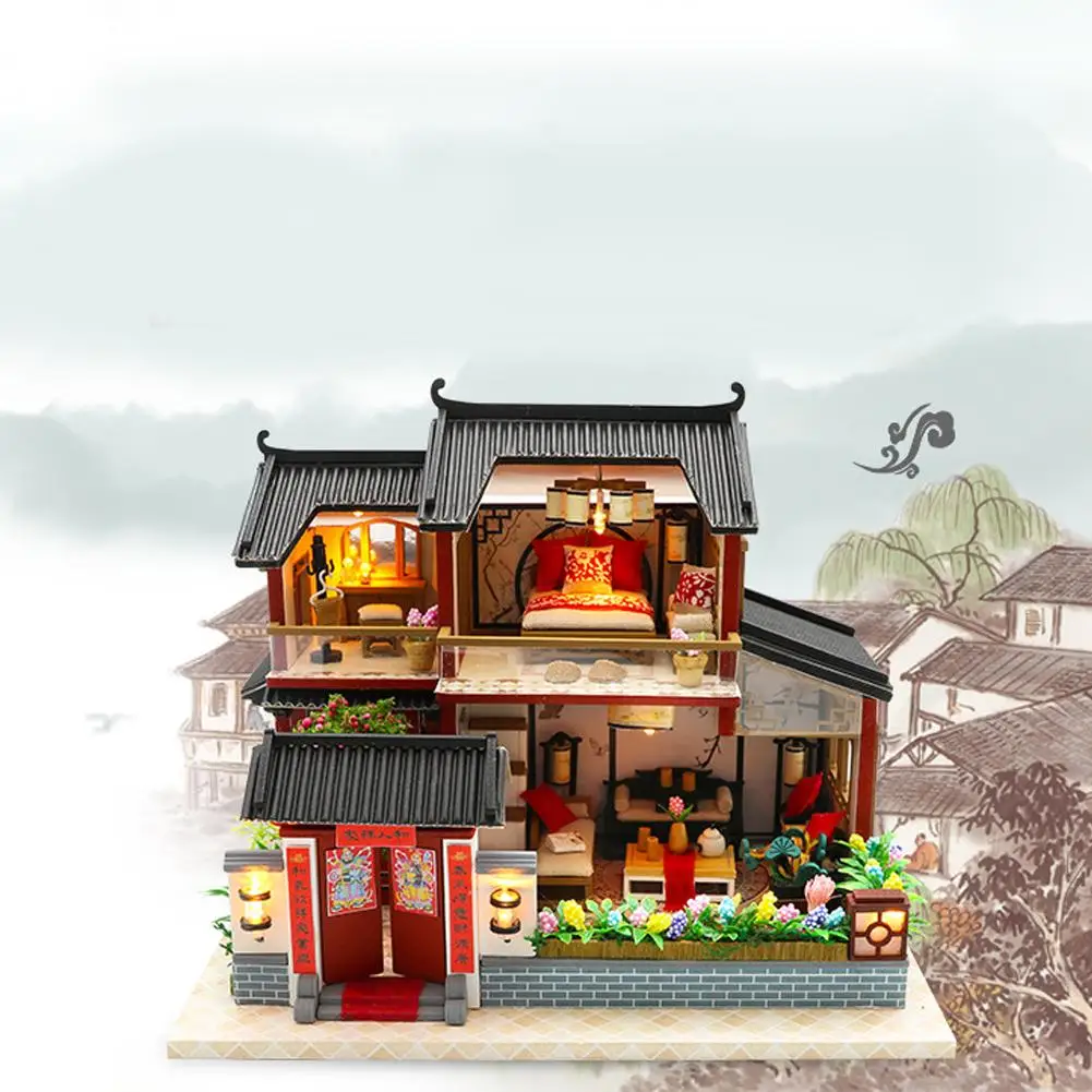DIY Dollhouse Model Puzzle Building Model Assembling Chinese Style Siheyuan Handmade Craft Wooden M